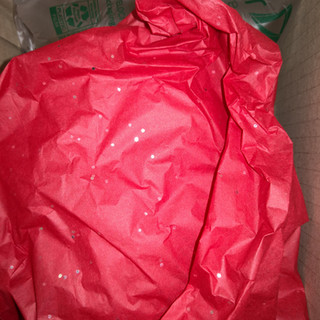 Final touch when packing... Once packed, I like to cover the top of the items with something to add a little more excitement when unboxing - for this I usually go for gifting tissue paper - it sits best as it conforms to the given space. If you need to buy it, individual bags of tissue aren't usually that expensive but if you can, just get a jumbo pack from somewhere like Costco - less plastic wrap, more variety. They're usually packed flat so storage is easier than rolls of wrapping paper. TRICK: I learned a trick about giving tissue body from a retail assistant a while back: pinch it in the middle then flick it hard